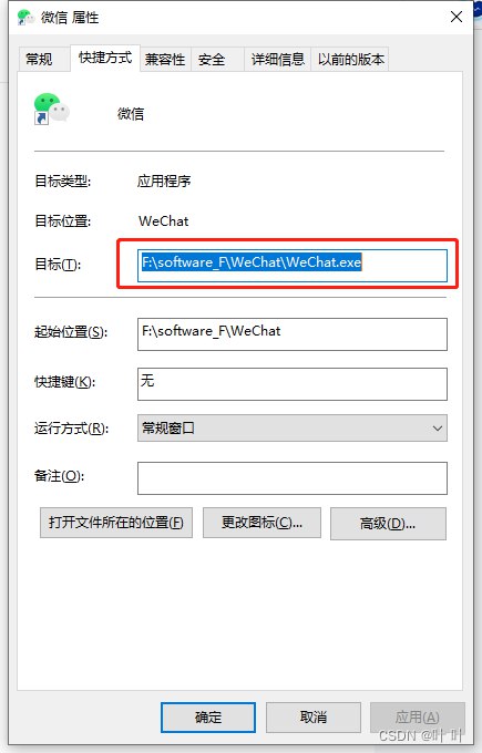 F:\software_F\weChat\WeChat.exe 为实际电脑微信安装路径