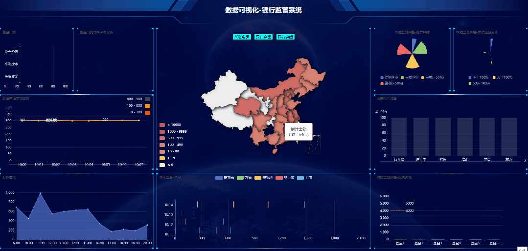 • 多维度数据展示:可视化大屏可以集成多个数据源,通过多维度展示,提供从不同角度分析问题的能力。