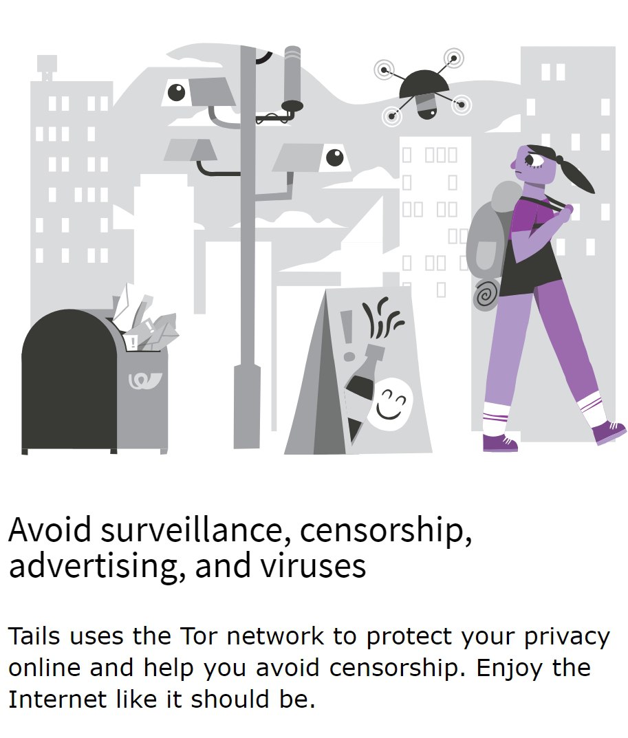 Tails 使用 Tor 网络 保护您的在线隐私,让您远离监视、广告追踪和恶意软件,同时帮助您绕过互联网审查,尽情享受网络的自由。